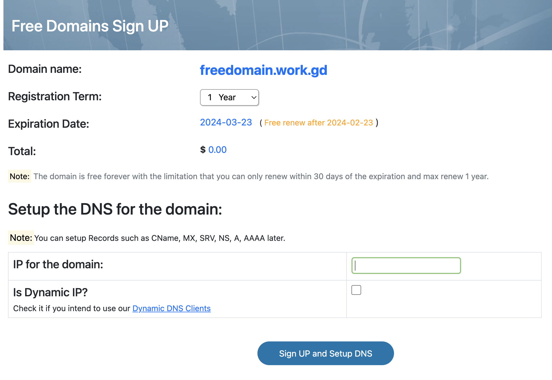 무료 도메인 검색시 Freenom 사이트가 많이 나오는데 사이트가 너무 느리고 내 IP DNS를 바꿔줬음에도 이게 있을리가? 한 도메인명으로 검색해도 available한 도메인이 없어서 freedomain 사이트를 이용했다.