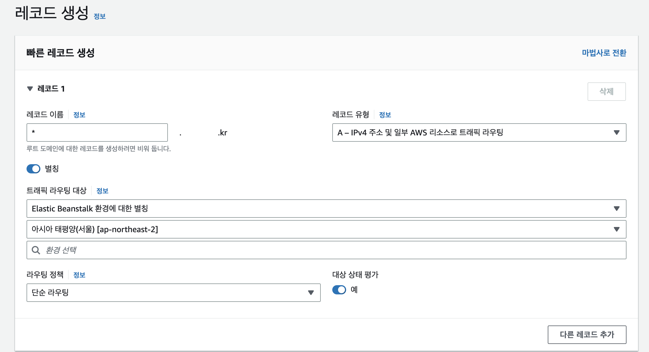 별칭 레코드로 AWS elb와 연결하기 위해 A레코드 사용